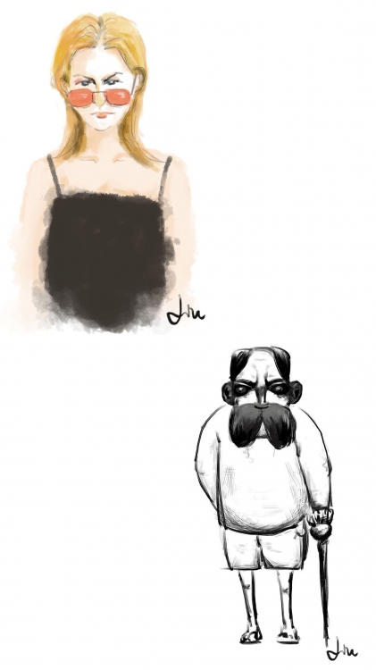 Finding the interesting scenes , getting inspirations from those pictures and drawing some characters or change the structure .