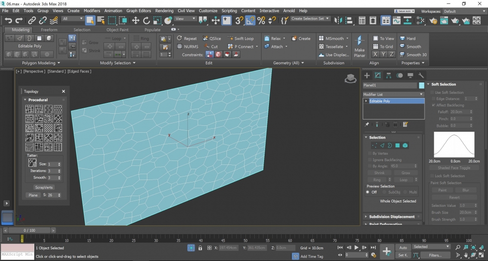 I am trying to create a stone wall structure using single plane geometry. In 3ds max there are different tools which give different results, I am using Generate Topology feature in 3ds max which creates an interesting design on a plane which can be then extruded to create shaped