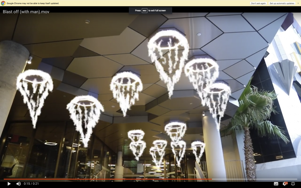 Upon my own understanding of the lights, I tried out a bit of animation to make them look like laser beams, that didn't work well but then space shuttle exhausts turned out to be a fit.