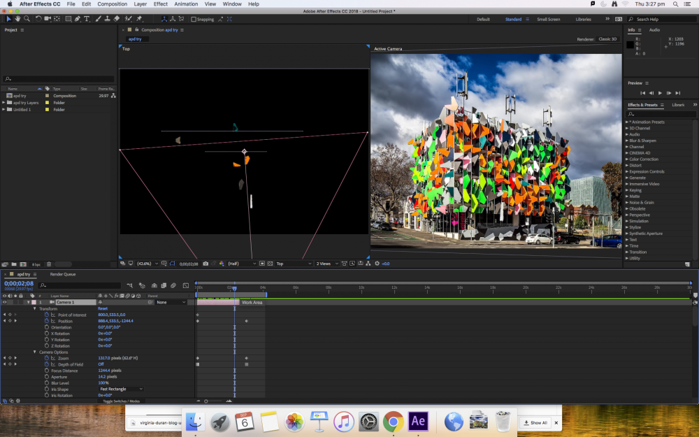 What I learned out of this was how playing around with perspective using 3D camera enables me to mess around with the structure and staging of an image itself. This process, upon refinements could be very useful to me in my studio work.