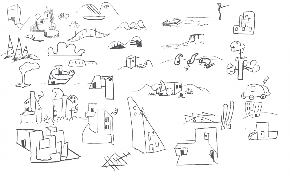 Starting filling out the pitch document with with sketches and layout concepts. Got some desings mocked up for how the human world and overside world environments would look like.