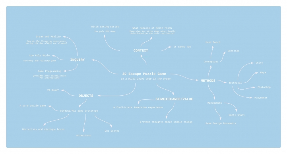 For my second studio project I would like to make an escape puzzle game that explores dream and reality, specifically the premise of what if the things we see/ignore during the day appear in our lucid dreams?