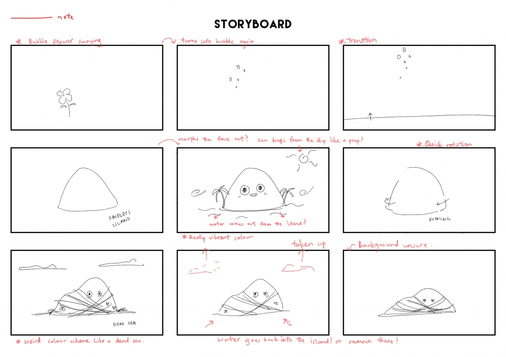 I reviewed my storyboard again and added in some information about the morphing and the background. Hopefully, I could get some feedback to improve it. I am also worried that the appearance of coconut and vines would be too much. I think I would be reaching out for feedback for that as well!
