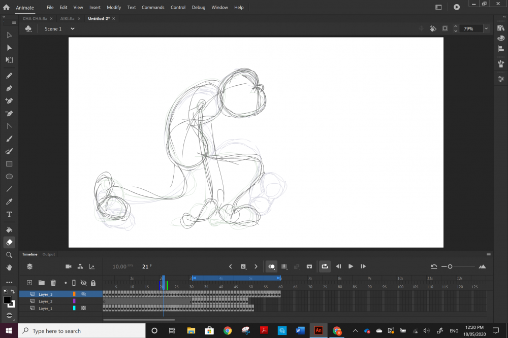 Ultimately I am really happy with this result because as well as having the disintegration effect in 2d animation, I have used rubber hose style effectively in this sequence. rubber hose works really well for a quick animation because I dont have to worry as much about something looking 'realistic,' and the design elements of using peanut and heart shapes made drawing the frames so much quicker than my realism style.
