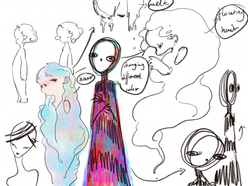 In the first week, I tried to use different painting methods and different styles to create some characters. Because there is no specific character or style in my animation, it indicates that I need many characters. And I tried to find some photos of different colors, hoping to learn more about the relationship between emotion and color.