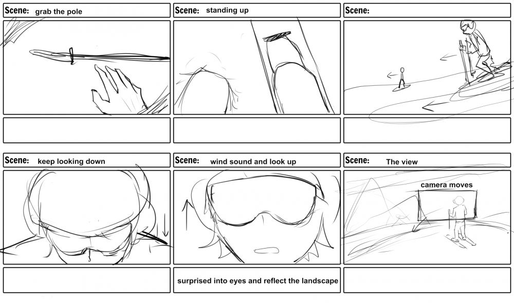 Storyboard first draft, I will be doing camera settings and background assets for the next step.