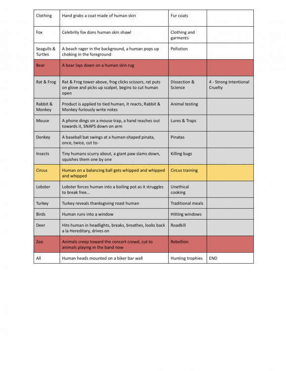Note - Red vignettes are likely to get cut, Yellow vignettes are likely to be altered or cut.