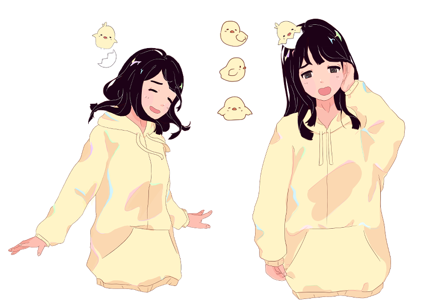 Following Little Nightmare’s footsteps, I added in a few baby chicks as mascots to the character because I thought they would contribute to the bright and easygoing feel of the character.