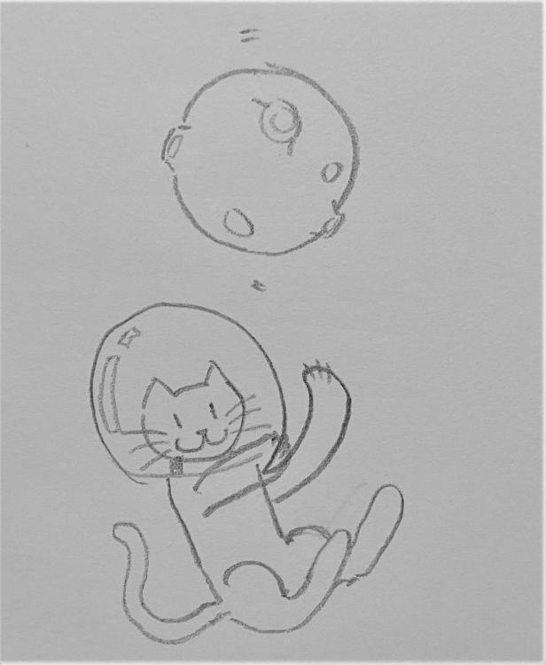 I started out by drawing a cat with a space helmet on paper. It’s spinning a planet as if it’s a yarn. I have tried digital drawing and 3D sculpting before, but I feel like drawing on paper is the easiest and quickest way for me to visualize my ideas.