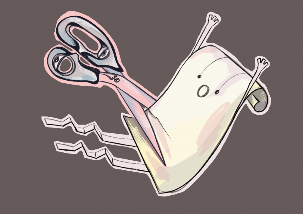 Paper and fabric - victims, desire to prevent and stop those criminal cruelty actions of the scissors
