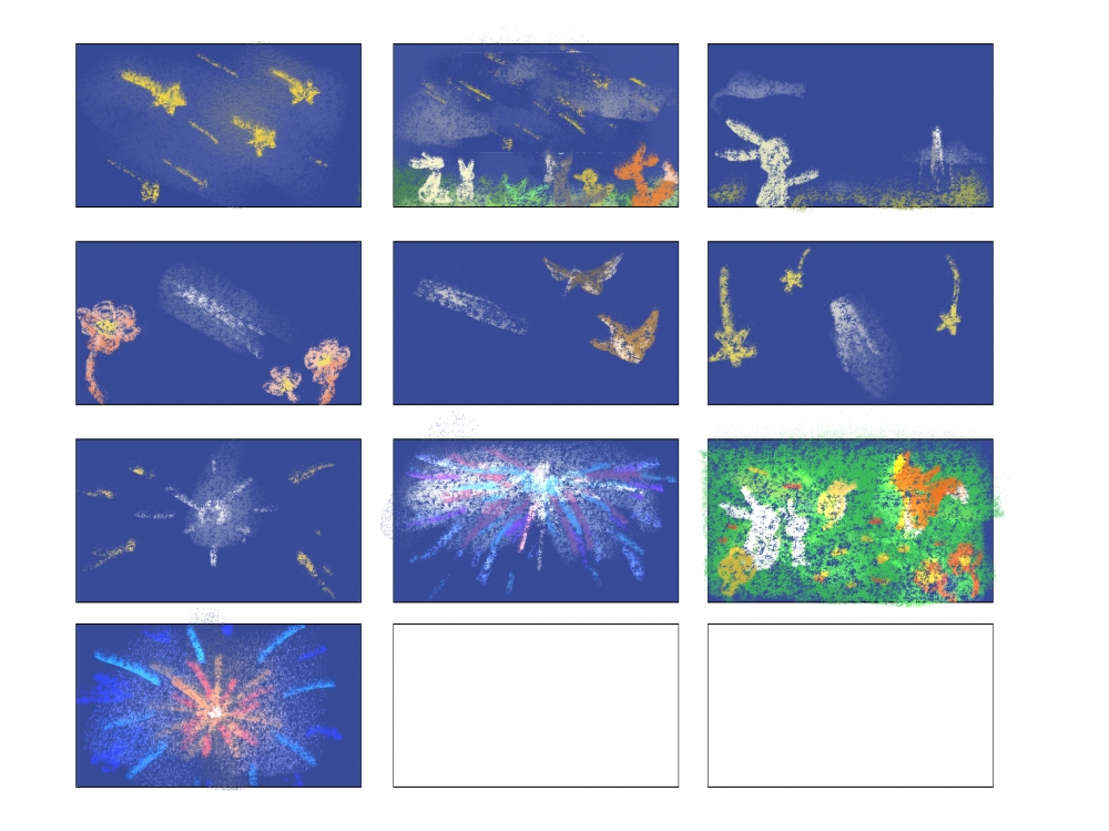 With all the strength, the retracing meteor shot into the clouds. Suddenly, the night sky burst into dazzling and colourful sparks with a loud sound. Everyone looks up, and they are so surprised to see the bright light shining in the night.