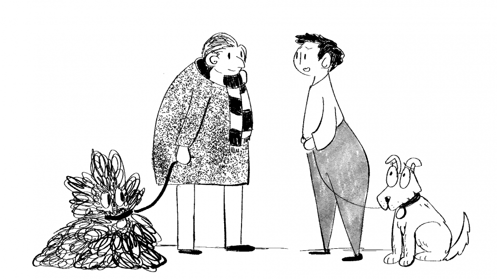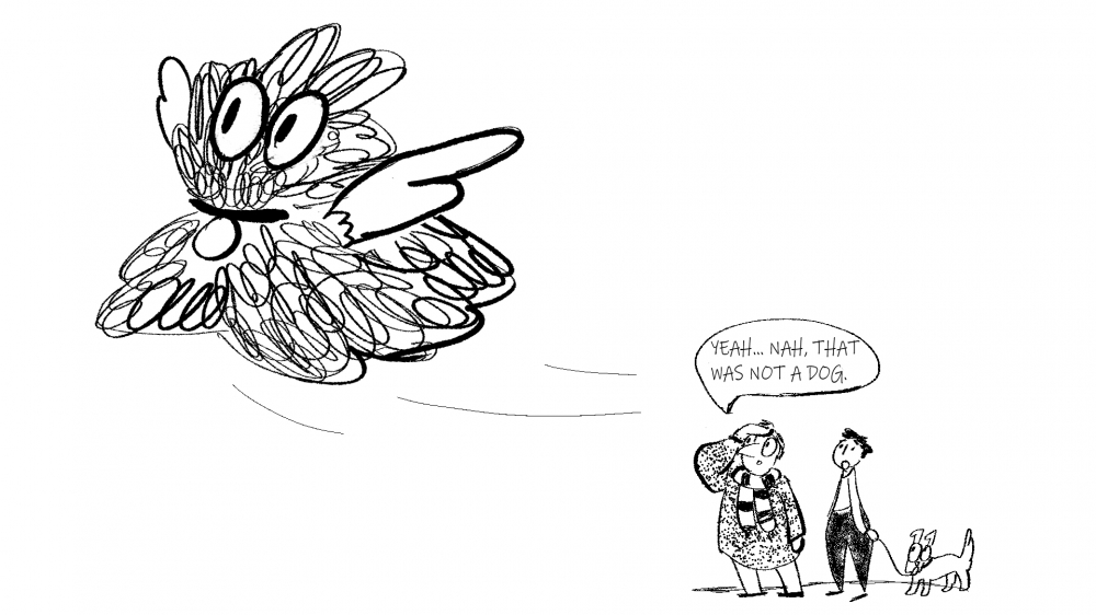 The fun of this character comes from the indistinct shape of the ‘dog’ creature. This medium is perfect for bringing this comedic element because it allows for this squiggly creature to exist. The simple artistic style also contrasts with the creature, making it stand out more and appear more strange.