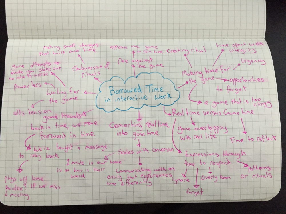 I feel games are able to offer a unique relationship to story or character by overlapping into your real life, and through forms of expression around timings or commitments of interaction. I felt by exploring this concept of ‘borrowed time’ I could see many different avenues for unique storytelling.