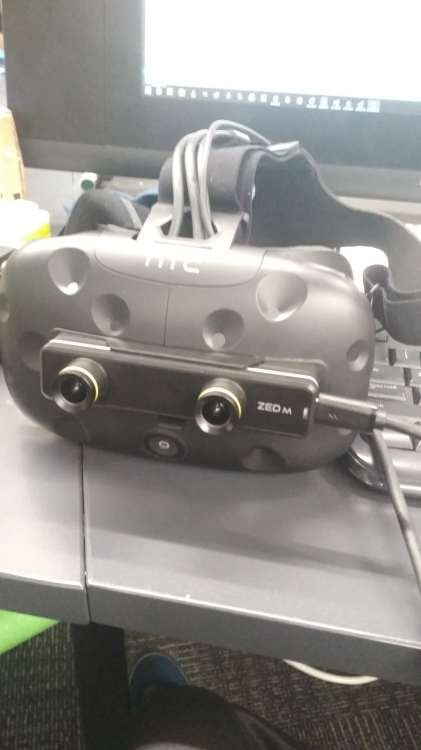 combining zed Mini (stereo camera) + Leap Motion (hand detection) + HTC Vive.