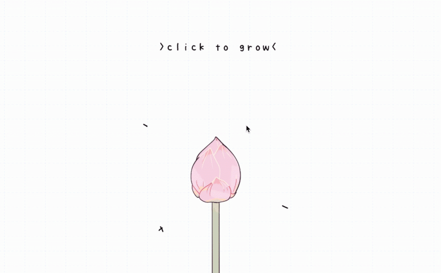 So, in order to respond to the theme, I made a little interactive exercise where the player could keep clicking on the flower and help it grow. I was inspired partly by Terrarium: Garden Idle that has a concept of using growing virtual plants as healing and relaxing. I also wanted this interactive piece to be motivational and also related to time.