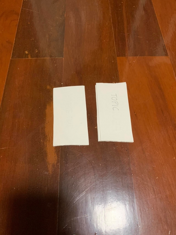 I created a prototype of card game by using paper. There are two desks of cards, one is topic and the other one is how the players may create the artwork.