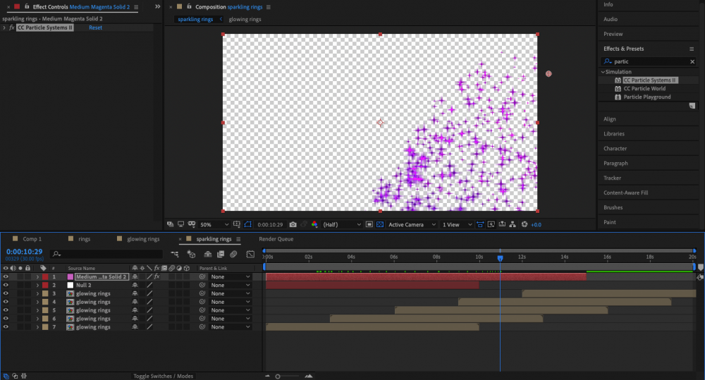 I made a Pre-Comp file of the Particle Systems path that I needed, and a Pre-Comp file of the repeating tunnel as well to streamline the final file.
