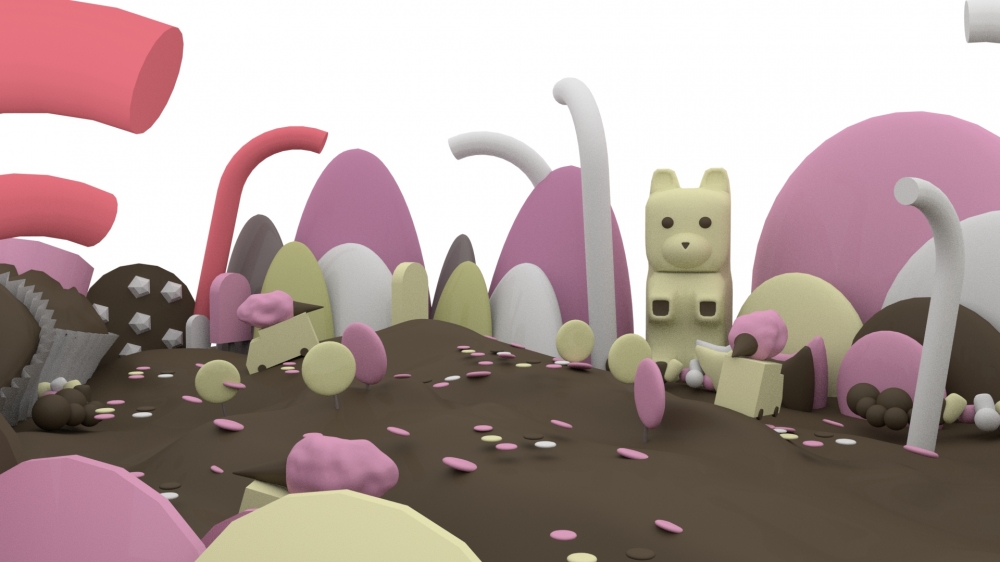 After forming these rules, I thought I should work around creating a things that are liked by everyone. So I thought that many people especially kids do have a sweet tooth, So, I came up with the idea of making candies, cookies, ice creams, lollipops, marshmallows, gummy bears, candy canes, chocolates, and Ice cream truck! Also, I wanted to create some things which are imagined by the people by are not always available. For instance, many people want to know such a place in real life but that is unfortunately not available. Towards the end, I complied it all and created a candy world out of it. Now this world full of candies is ready and I can use it in the future semesters to make an interesting game or a linear animation piece.