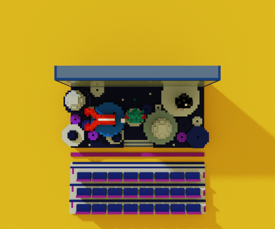 Based on different texture, it has different sound when the player put object on the theater. The clay theater will have light and small sound, while the plastic theater will have a plastic crash sound or a mental crash sound for iron theater.