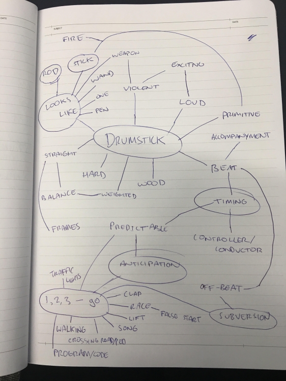 I will photograph the drum stick in different environments and contexts where it may be mistaken for a different object.