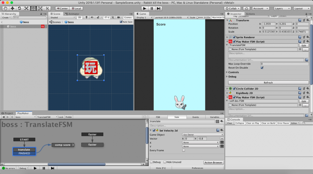 In the game, the bosses attack the rabbit (the players) and the players try to defeat them. When the score reaches 15, the bosses think that the rabbit has already adapted to the current workload so they try to ask for more from it. Therefore, the speed of bosses movement towards the rabbit is increased since score =15. Yet, the rabbit learnt to fight back after that. The cooldown between shots is shortened since score = 20. Then, the players will become invincible. The aim of this game is to let the players shoot down as many bad bosses as they wish until the anger in their heart is eliminated. 🤪