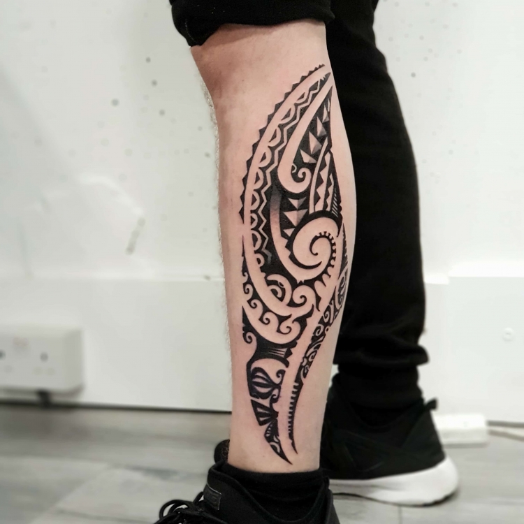 Note: Leg photograph is a professional example from "The Black Hat Tattoo Studio".