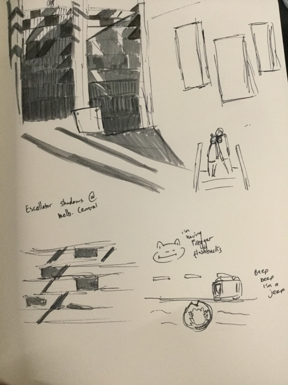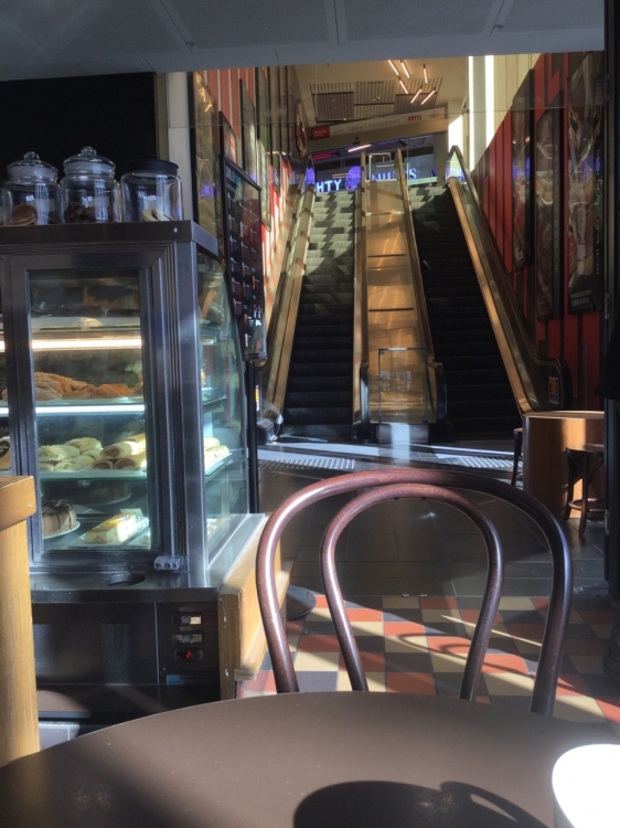 In this case, the subject was a flight of escalators by the Melbourne Central Gloria Jean’s. The early morning light shone through the windows in such a way that caused rectangular and triangular shapes to be cast on the stairs in an interesting, rotating pattern.