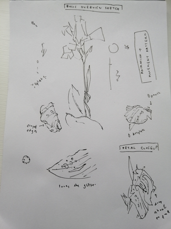 In response to the theme of Observation, I observed a flower worn down by the rain at Old Melbourne Gaol, and created an animated illustration inspired by it using Clip Studio Paint and After Effects. By focusing on the details of the drooping petals and the droplets of water falling down the petals and portraying the flower as part of a dress worn by a crying girl, I believe was able to bring out emotions of sadness and vulnerability in the artwork.