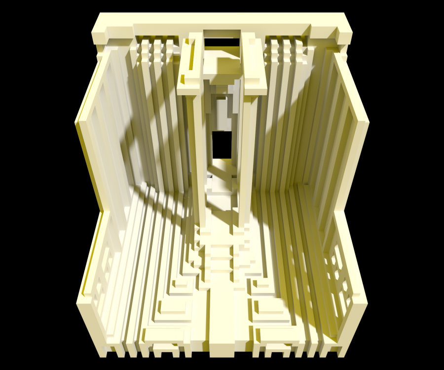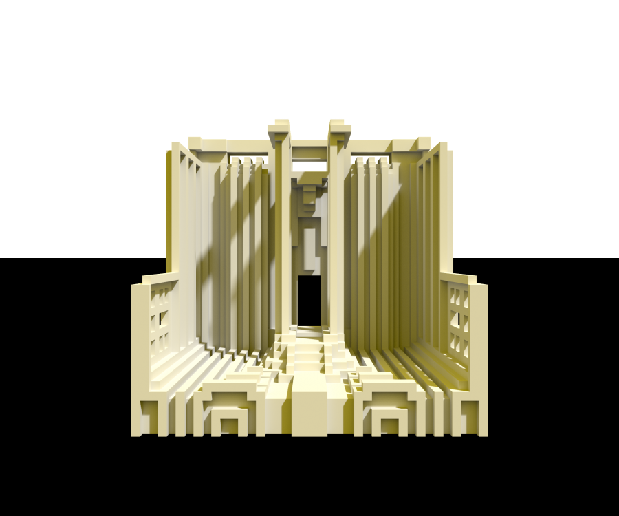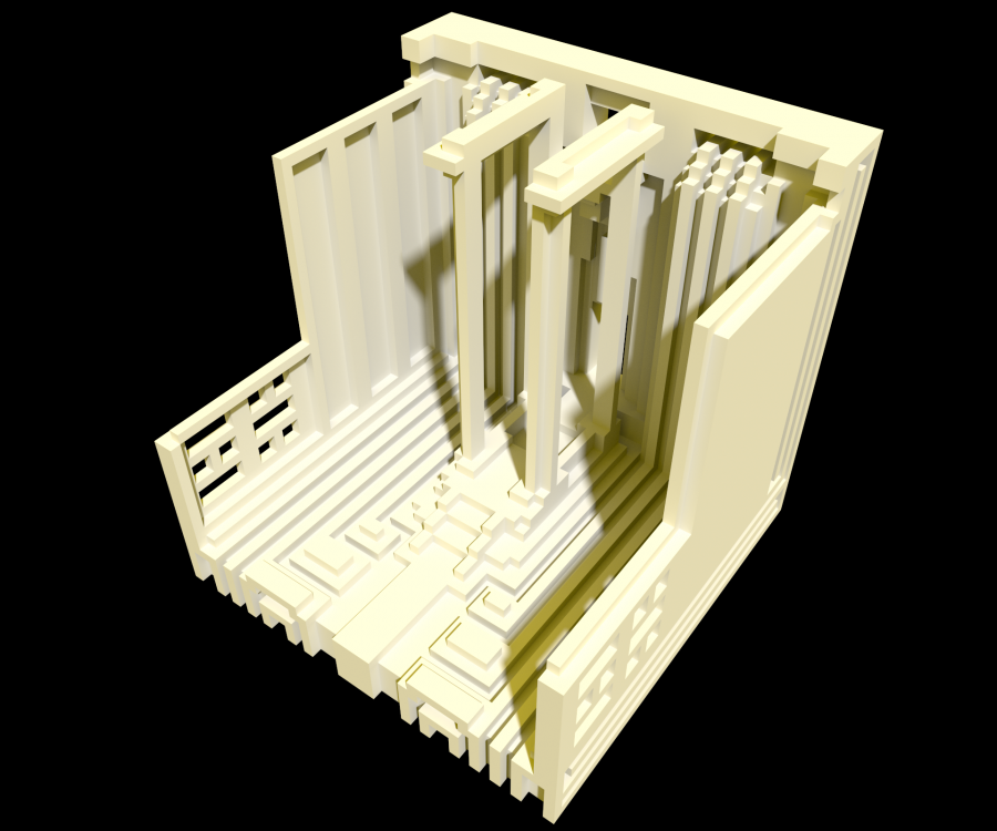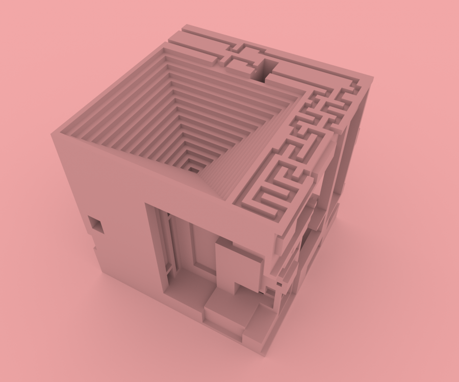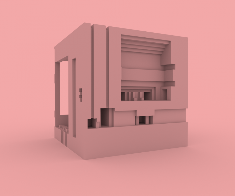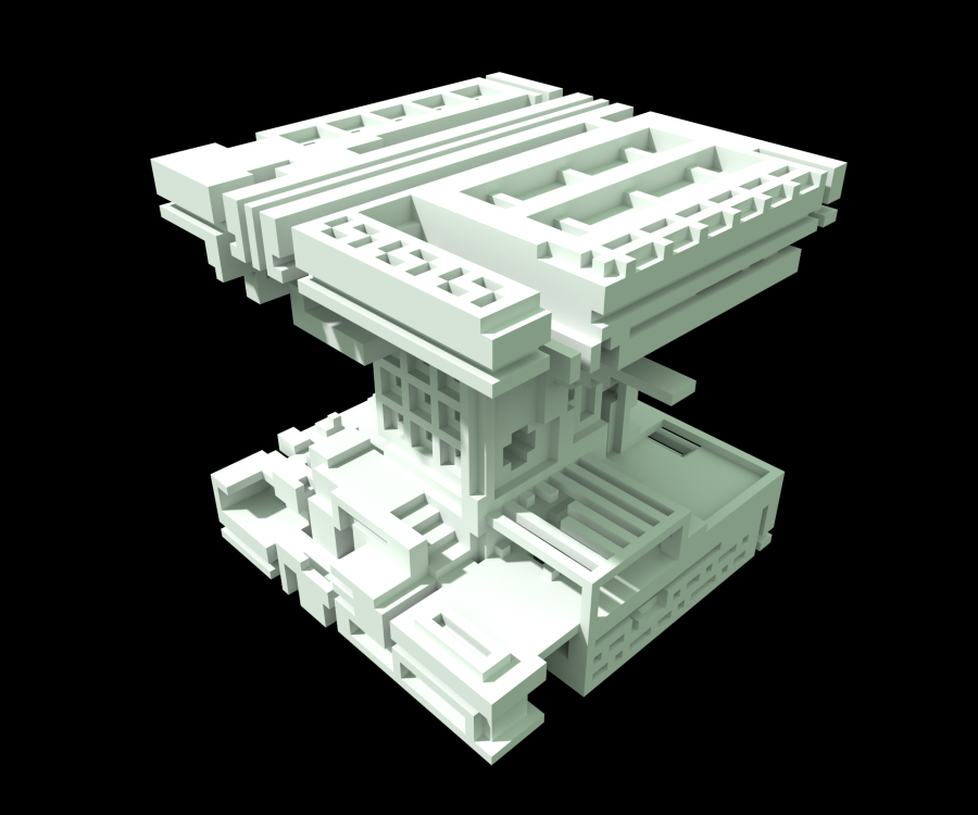 In response to this week's theme of Forces I created three unique structures inspired by Brutalist architecture and the designs of MC Escher. These structures were designed with the constraints of voxel art, specifically using the tool MagicaVoxel which restricts the space in which you can work in to a 40x40x40 cube. Additionally, I constrained myself to keep ergonomics in mind. These spaces are designed as miniature cross sections of buildings in which humans could exist and operate.
