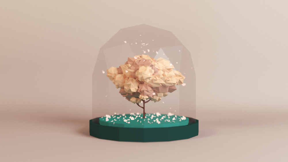 I made low poly Cherry blossom globe models using Blender. And I did the colour correction work on the video at After Effects.