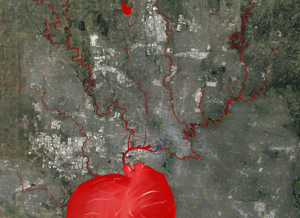 I will investigate the parallels between water and life by rendering the Yarra River as an artery through which the land and people are supported.