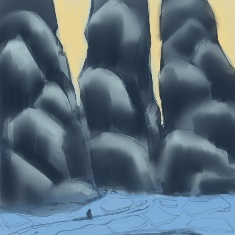 In response to the theme of Place, I did an environment concept art of a person traveling in a snow mountain. I use Adobe Photoshop to do the sketches and final work.