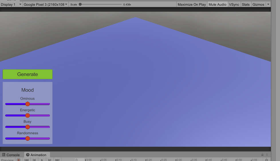To do this, I imagine a central “mood control” which would then adjust lighting, camera angles, relative proportions, behaviours or other factors over which it had control in the scene.