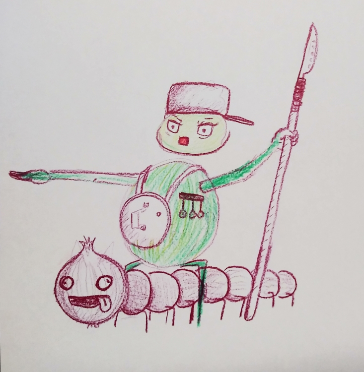 I will create a short comic-like storyline involving a peaceful fruit, their traumatic harvesting and eventual sale, forging them into the leader of a Kitchen Rebellion.