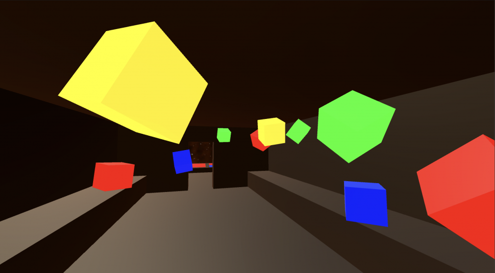 In response to the theme of ‘Character, Environment, and Events’ I produced a demo scene in Unity (playable here) set on a spaceship, where the player can interact with a collection of multi-colored glowing cubes, as well as having the ability to disable or enable gravity.