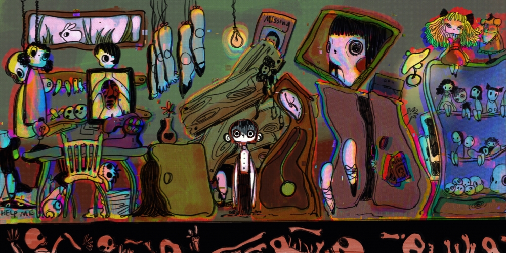 I hope this character is set to be a person who likes making dolls and can't distinguish between reality and dreams. Therefore, in his world, everything is distorted, but it is realistic. In order to pursue the authenticity of the doll, he even committed a crime at any cost. He looks decadent, crazy, enthusiastic and simple. His room needs to feel like him.