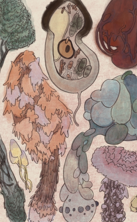 In response to the theme object-oriented ontology, I used illustration to create a group of mushroom structure diagrams.