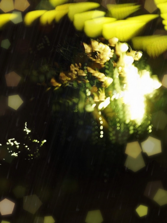 Using the same settings, I turn on the flashlight. I sprinkle water on my bathroom mirror, shut off the light and capture the picture of the reflected flashlight on mirror. Then, I merge the light painting photo with the recently taken photo in an app. I manipulate the photo adjustment tools and filters to pretty up the artwork. Some bokeh effects are added too.
