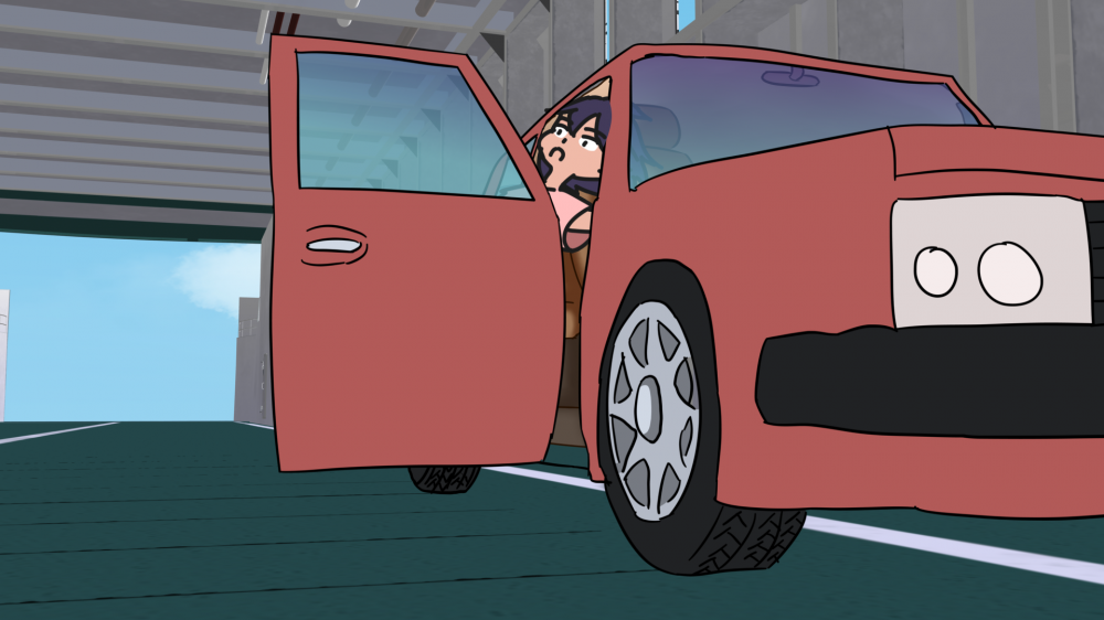 - I used the method of comparison for iterative animation. First, I made a 2D car to test the overall effect. I have to say that drawing a 2D car is a relatively troublesome thing, which also means that if the car has a lot of action, it may be very troublesome. But through the whole production process, I also found that the 2D car has great advantages, especially it can be well integrated with the 2D characters. Similarly, in the later stage, the covering relationship between the character and the car is also easy to handle. It only needs to stack one layer on top of another, and a simple mask can show the relationship between the car and the character.