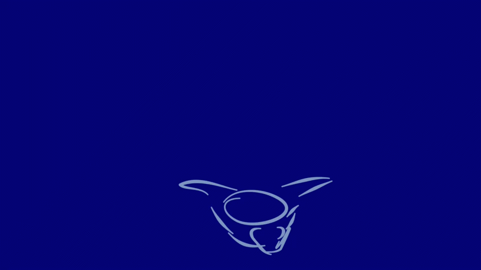 In iterating this sequence, I mde several versions of the pencil animation at various stages of having more inbetweens added in, refined and adjusted. Something that I went back over in iterations, for example, was the hair movement. In the initial pencil animations, I focused on the protagonist’s body to get the general sense of their position in space. With this more consolidated after a couple of iterations, I added in the hair and found that I would add more volume or length to it on certain arcs of motion