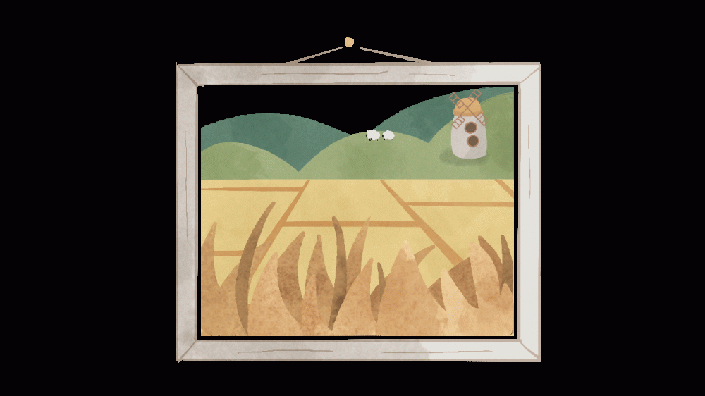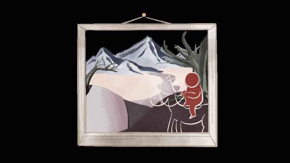 three main scenes in the animation. One is the god moving in