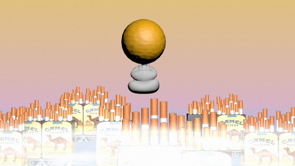 Using C4D to combine the magical ingredients of a 'Grapefruit Head', 'Mountains That Are Camels', and '3D Object'.