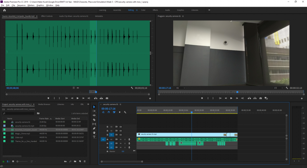 Animate the security camera to be able to look out the window and enjoy the view. Take some still photos and recorded videos on my phone, then edit using Adobe Photoshop, After Effects and Premiere into a short video.