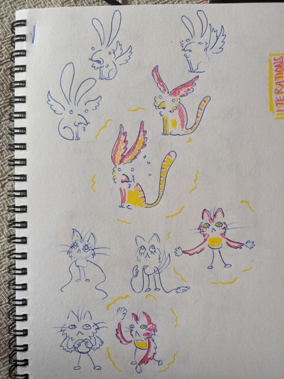 Today, in working on thumbnails, I took the opportunity to continue rapid iterations of some character designs that I doodled last week. I focused on having a running theme of lanky, rotund, goofy and cartoonish creatures, many of which are adapted from animal photo references. I need to now start considering the story of this object, and how the characters are involved in the world I am creating. This includes an additional character of the protagonist, who will be a goofy human that descends into a drunken stupor and sees the club that they are at is getting more and more bizarre.