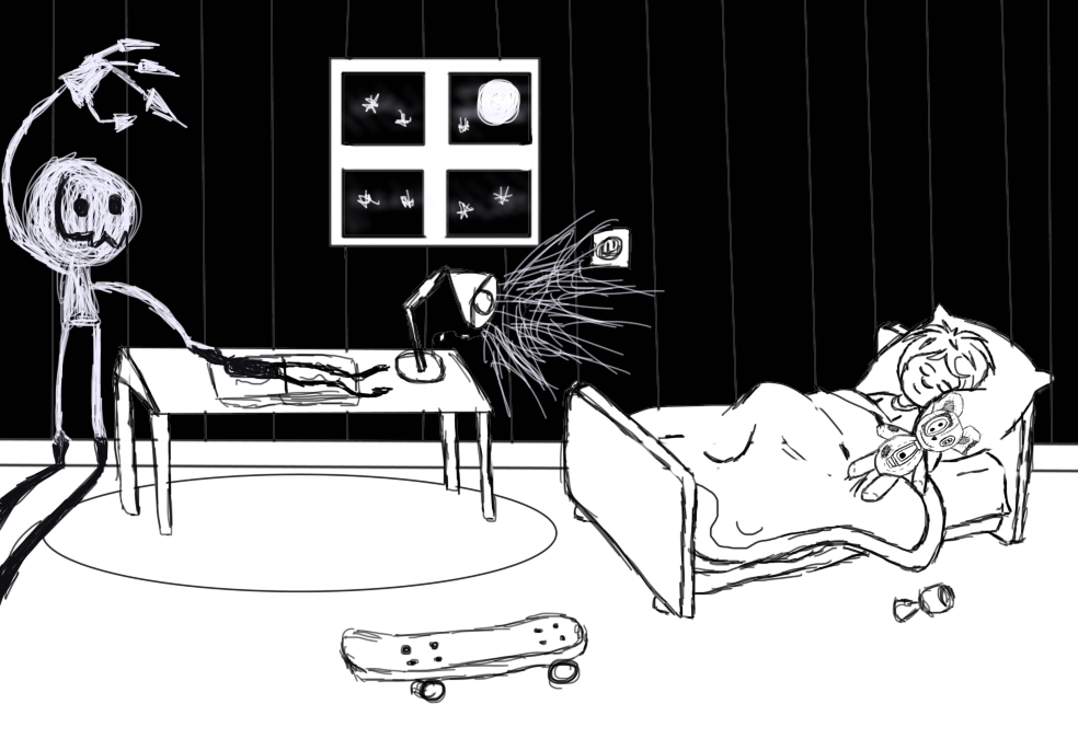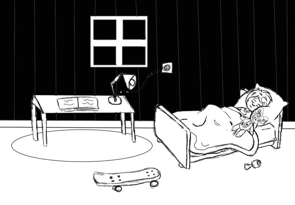 These are scene sketches of the room of the boy much older. In the first one is with the shadow and the second one without the shadow just to see how it could work with a background scene.