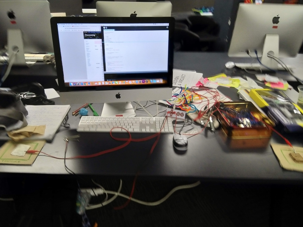 The first part of the video shows playtesters playing the game 'Steal the Treasure!'. Special thanks to Carlo, Adrian, Phoebe, Yao, Xin, Hizi, Fabian, Homie, Sean and Max for being my playtesters! :) The second part of the video shows my tinkering process as I was experimenting how to use the Makey Makey.
