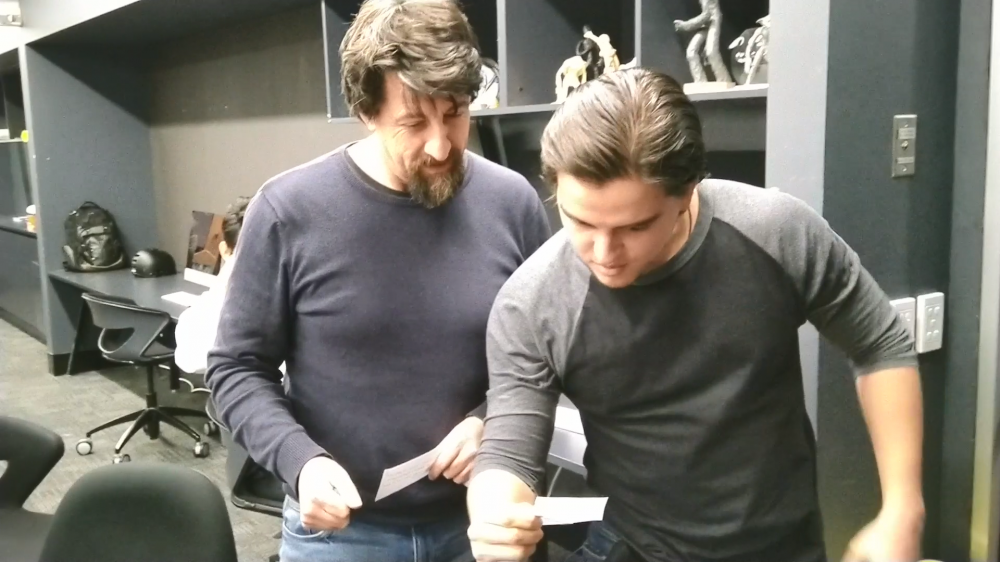 When Kate was giving her presentation and talked about using the physical environment for treasure hunts and solving puzzles/codes, I immediately wanted to make my own scavenger hunt style game. As Emmett was also interested in a similar idea, we decided to collaborate on this week's exercise. We wanted to take this opportunity to transform the MAGI studio into a playful environment - a "magic circle", or a special place in time and space created by our game (Salen & Zimmerman 2004).