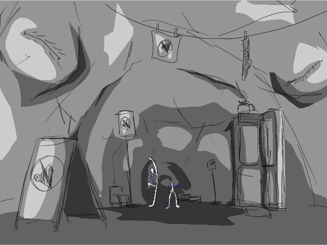 Two of the gifs have the environments themselves moving significantly: these are the blinking room (pictured), and the breathing bed. for these, I used a combination of Photoshop and Animate tools to animate the original environment images that I developed last week. The sense that I want to create with these environments is that they are alive.