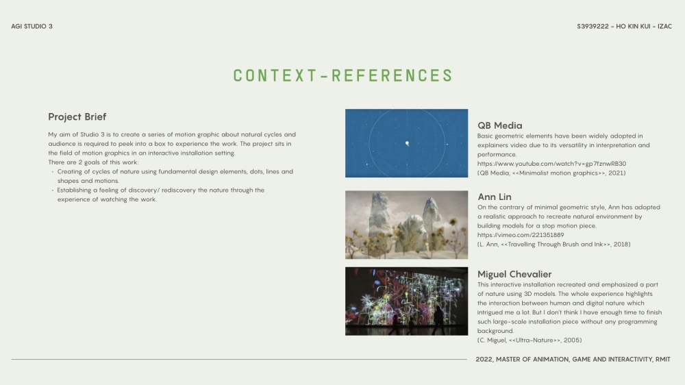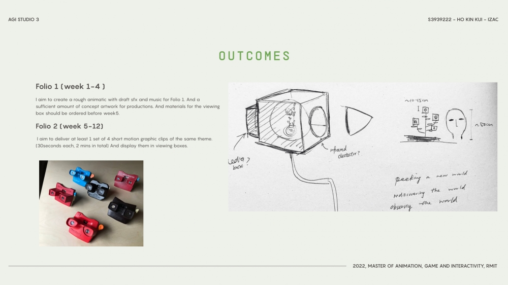 This week we basically brainstormed and did rapid ideation development with Kate. And this is a summary of what I have done. I plan to create a portable animation-playing device with loopable animation playing inside. I have also sketched a few concept artworks this week.