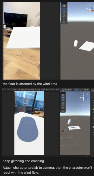 During this fortnight, I flew back to my hometown to tackle some of the document stuff which caused a delay in my progress. But I was able to pull out some progress by optimizing the movement of the camera movement and creating a basic collection system. The original plan is to show the character in the centre of the screen, but after a few trials and errors, this plan was not working due to the characteristics of AR. So I decided to make the game as a 1st person view experience, at least for this MVP.